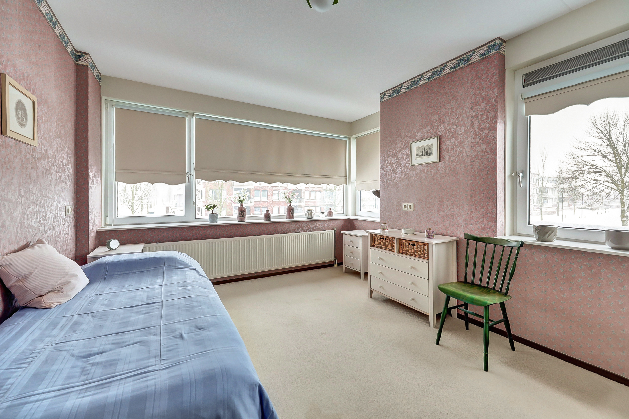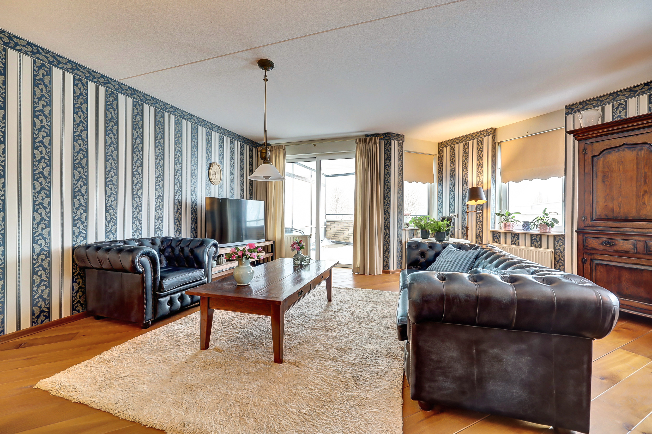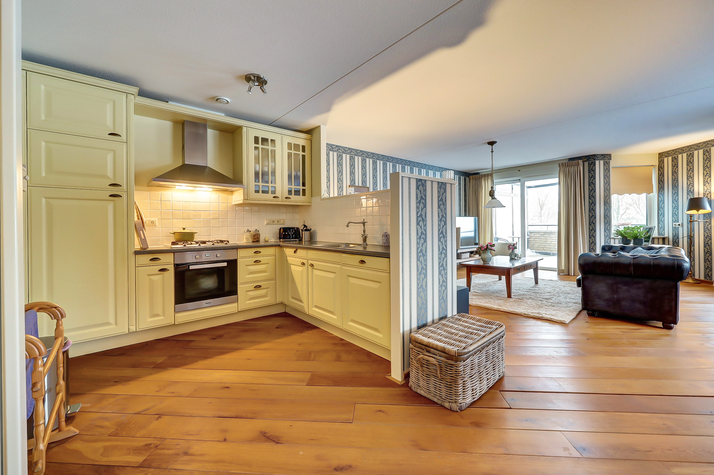 Door de hoekligging en de vele ramen valt er veel licht naar binnen. Dat geeft het appartement een open en aangenaam gevoel.