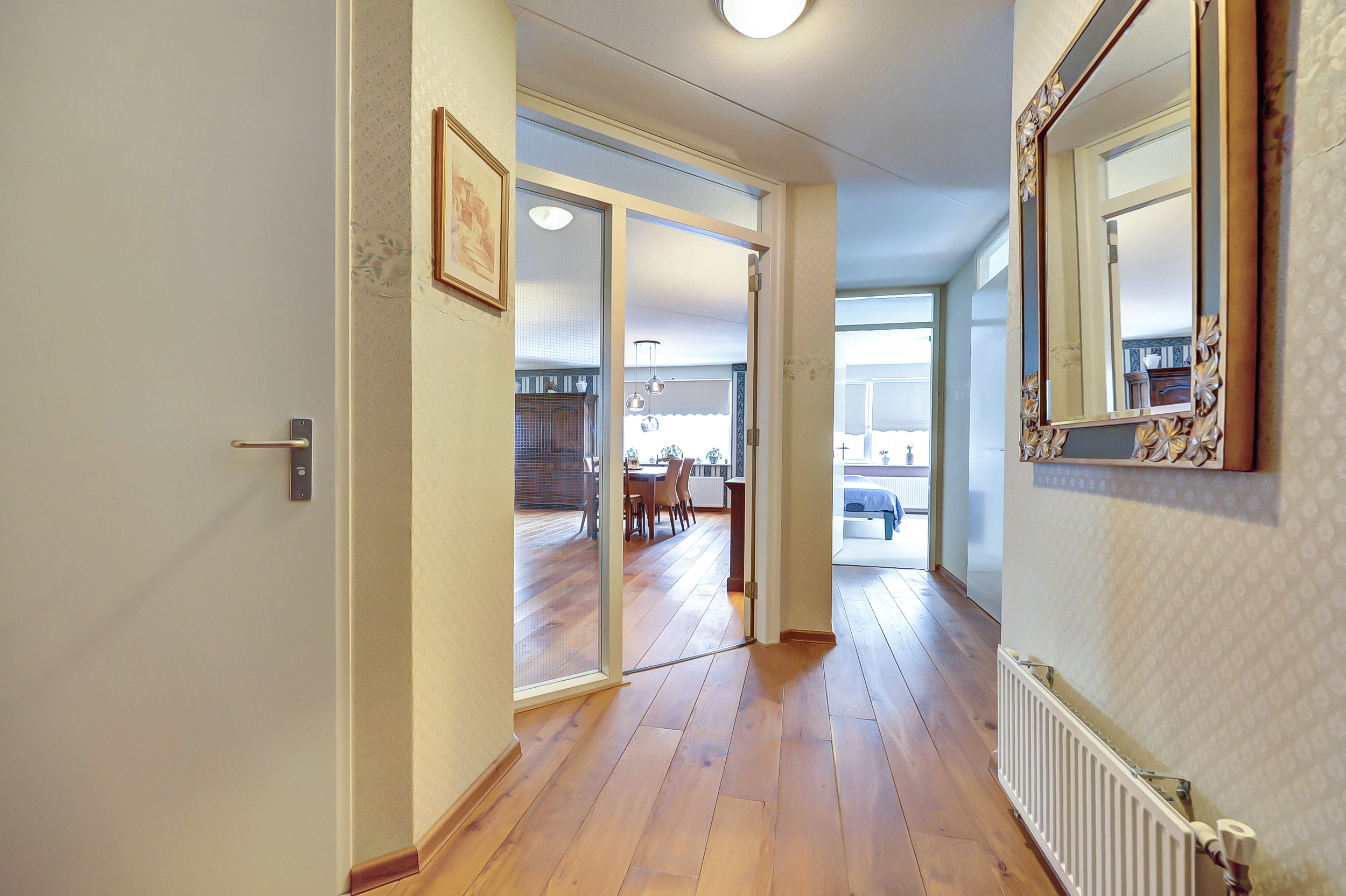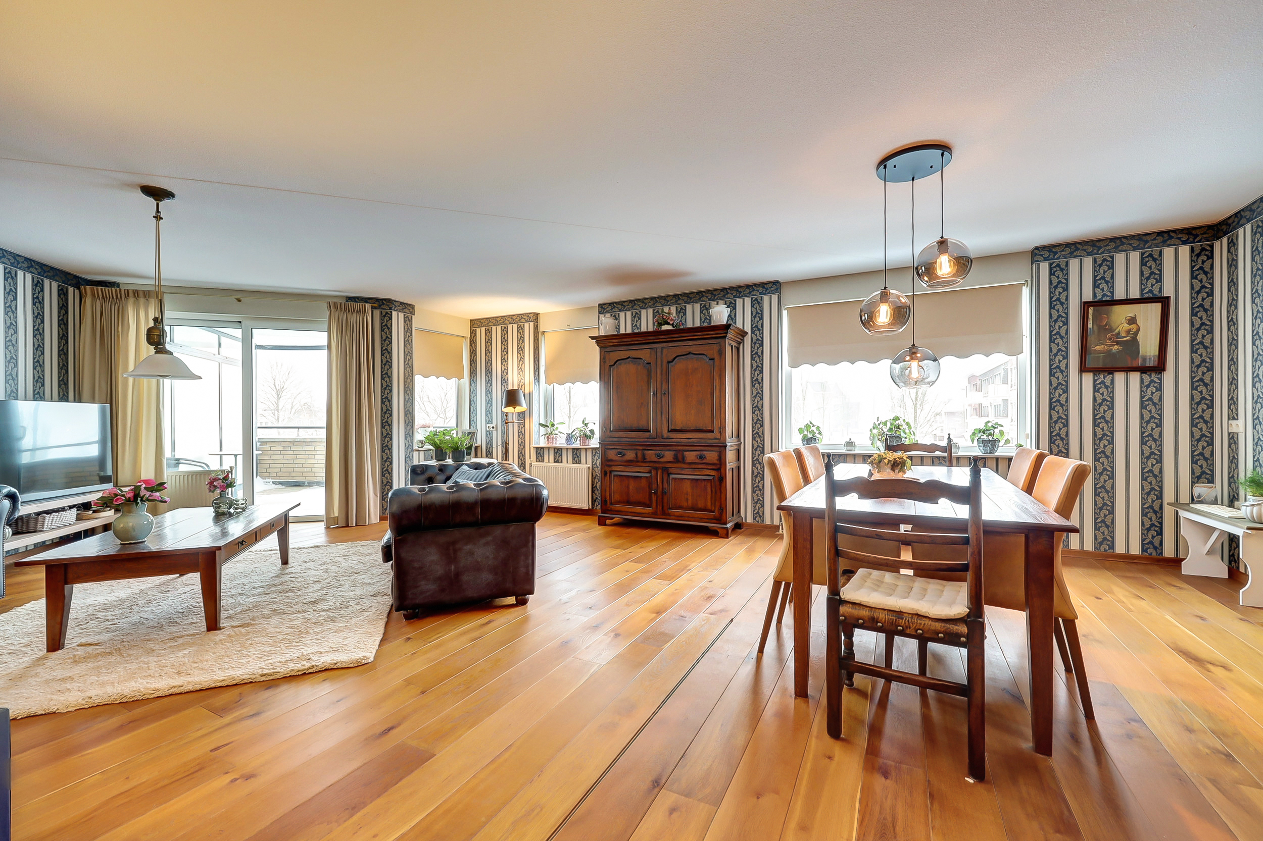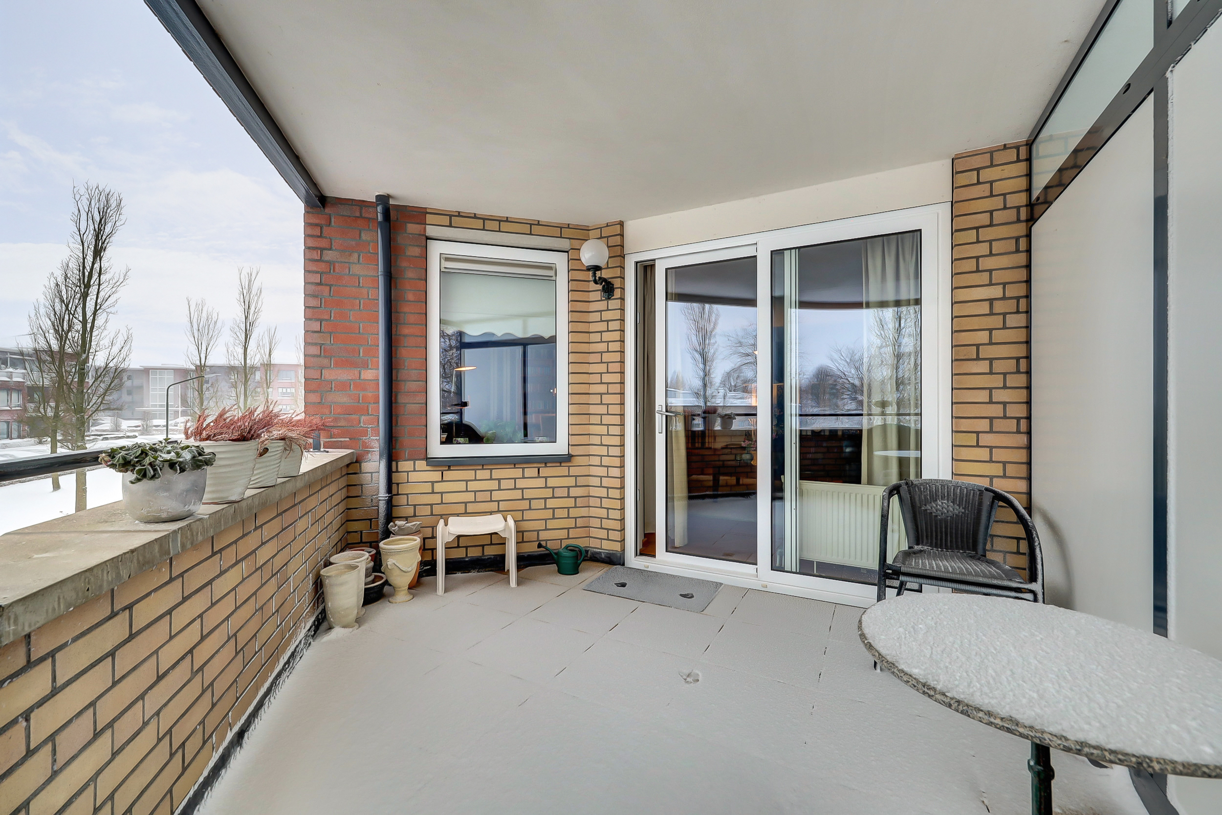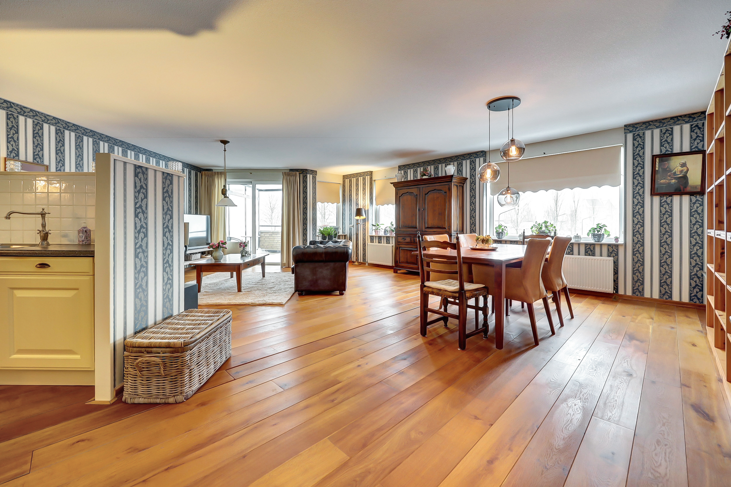 Door de hoekligging en de vele ramen valt er veel licht naar binnen. Dat geeft het appartement een open en aangenaam gevoel.