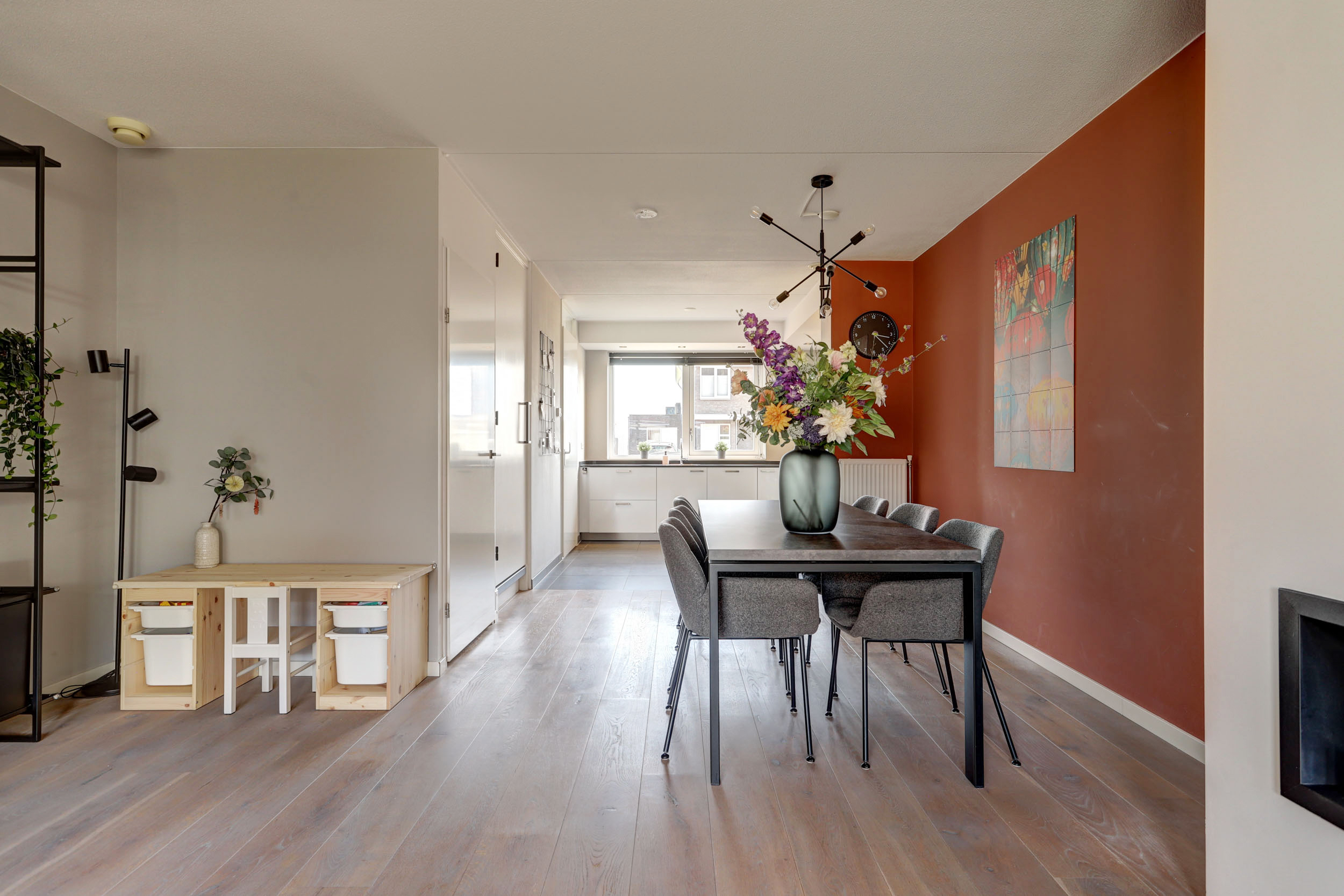 Ravelijn 34 is een woning waar de indeling klopt en de ruimte direct prettig aanvoelt. De begane grond is logisch opgezet, waardoor alles goed in elkaar overloopt.